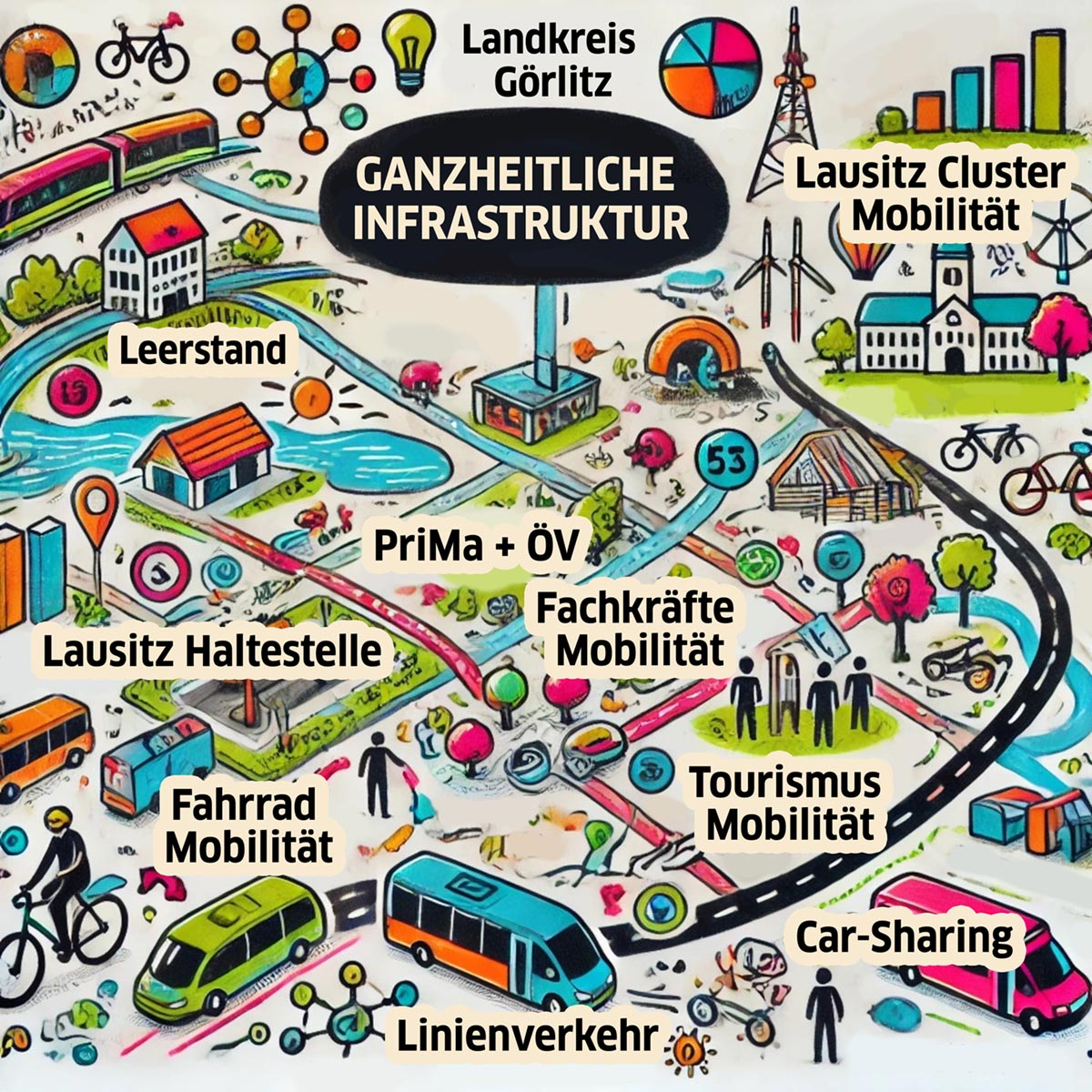 modern infrastructure by promoting the expansion of sustainable transport systems and essential institutions for public services and the economy, and by developing and implementing project ideas. In Lusatia, we are creating a modern, efficient, and livable region.