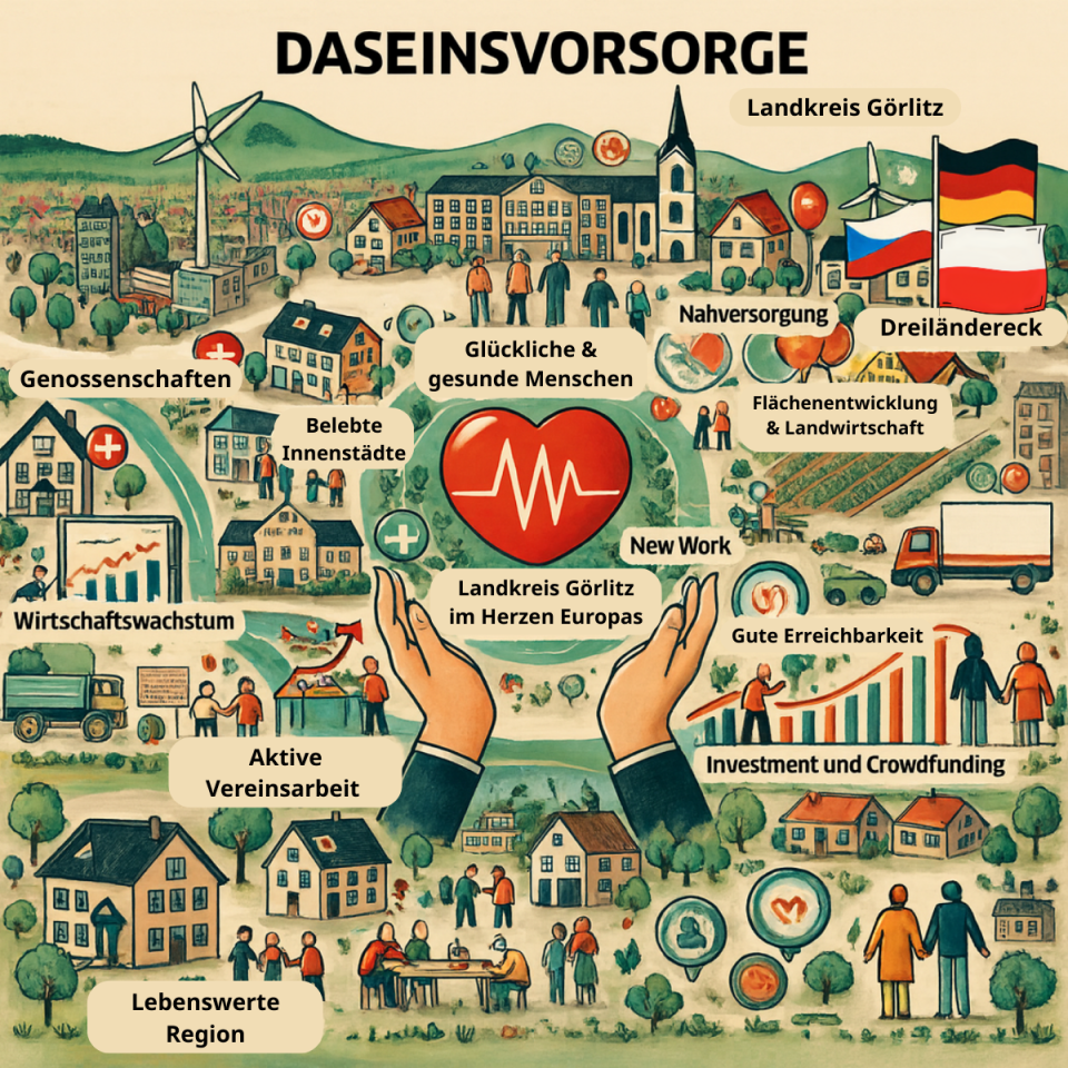 sustainability : Our region should remain an energy hub, and the transformation from coal to renewable energies is the overarching goal. The Göritz district is part of the Net Zero Valley. We are developing concepts that combine ecological and economic objectives, for example, in the construction of sustainable industrial parks or in the area of sustainable mobility.